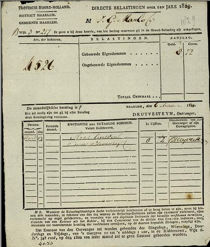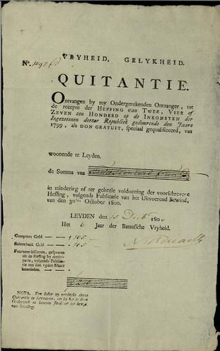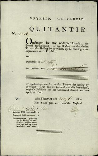 Kwitantie, vermogensbelasting, 1800