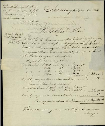 Brief stedelijke belasting Middelburg, 1834