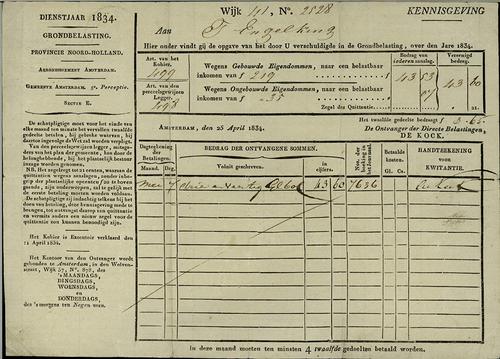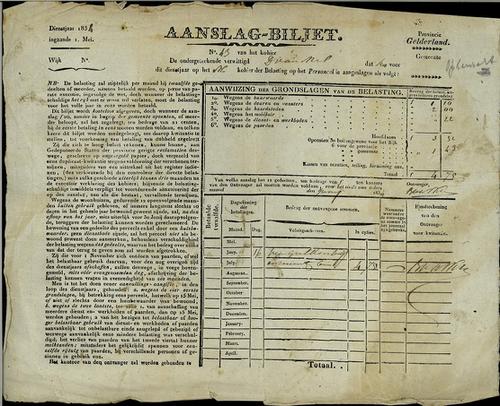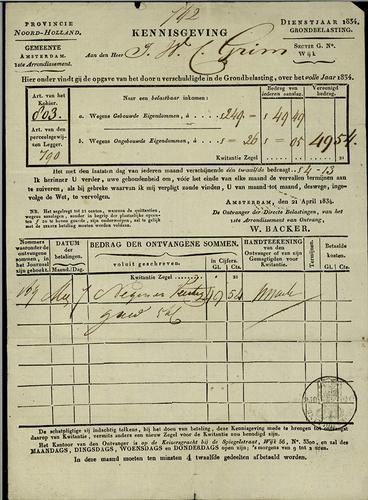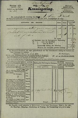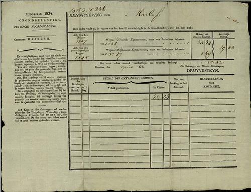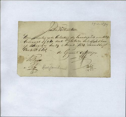 Aanslagbiljet, grondbelasting, 1834