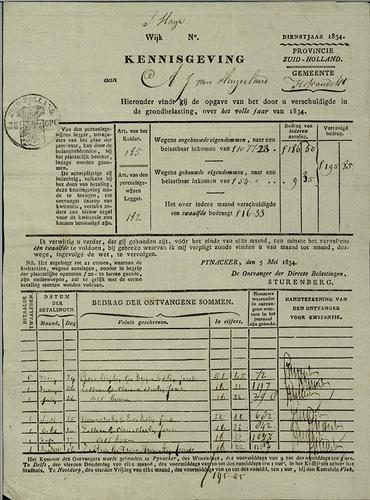 Kwitantie, inkomstenbelasting, 1800