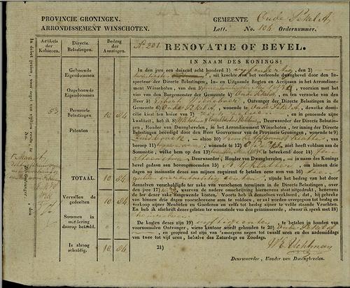Aanslagbiljet, patentbelasting, 1834