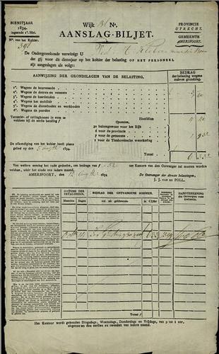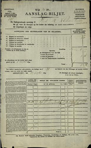 Aanslagbiljet, personele belasting, 1834