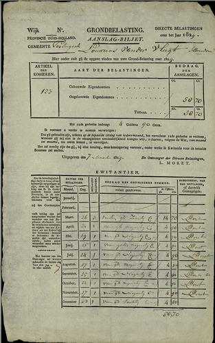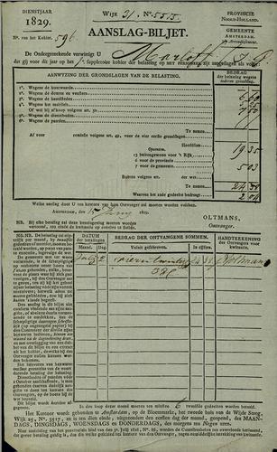 Aanslagbiljet, grondbelasting, 1829