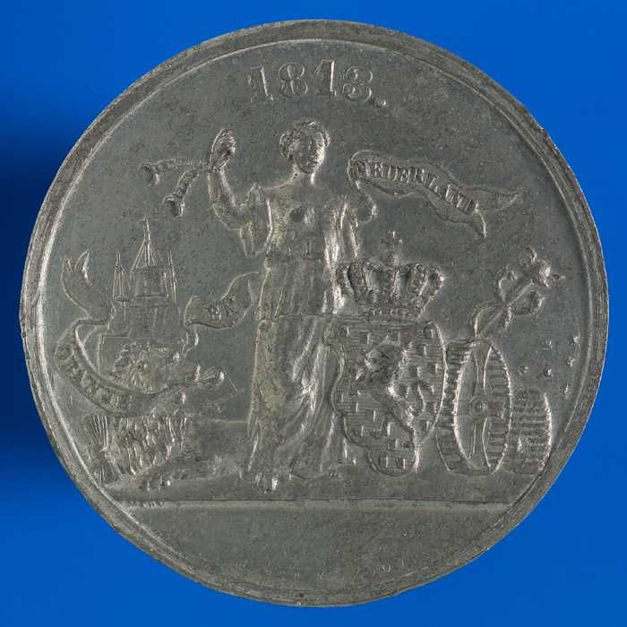Schildvormige draagspeld met "God zij met ons 1813 -...