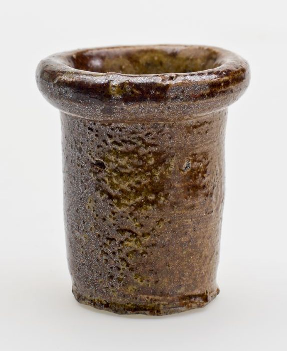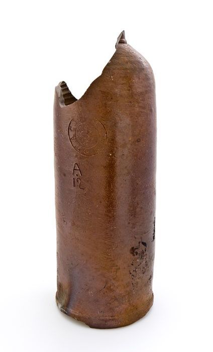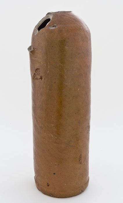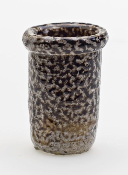 Steengoed kokervormige zalfpot met verdikte bovenrand