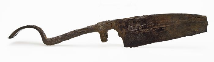 Heft van mes met plaatangel en twee halfbolle belegp...