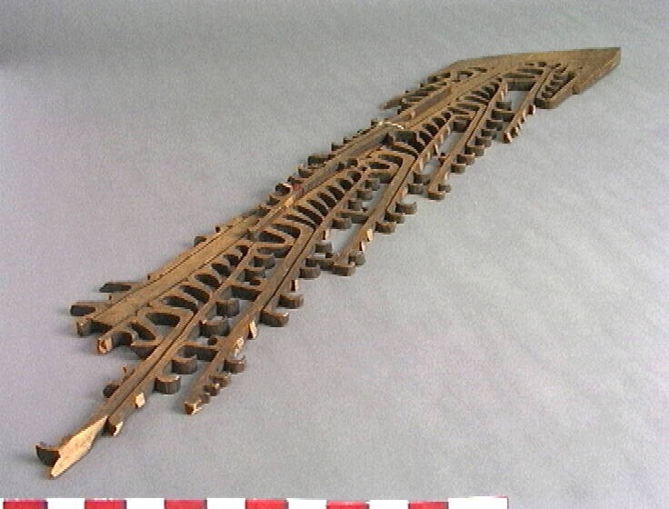 Neksteun met concaaf bovenvlak, versierd met tandvor...