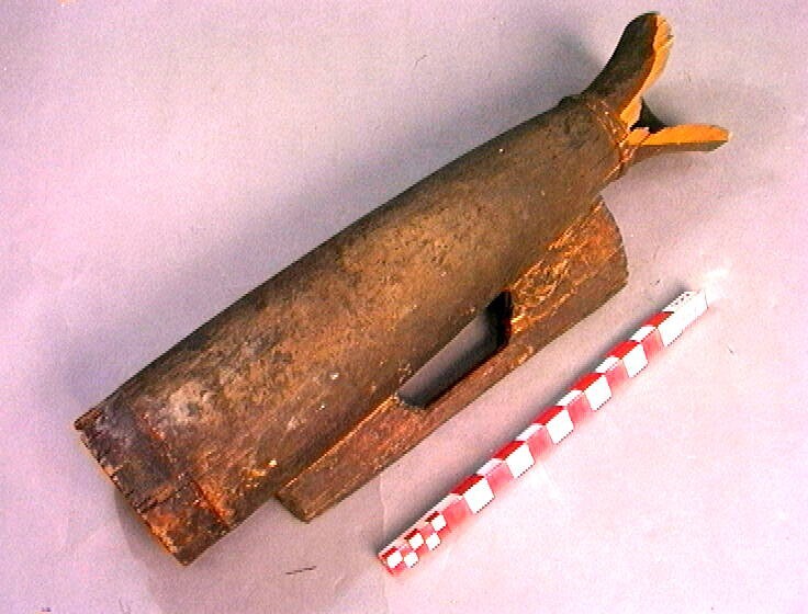 Voorouderbeeld van roodachtig hout met zwart gekleur...
