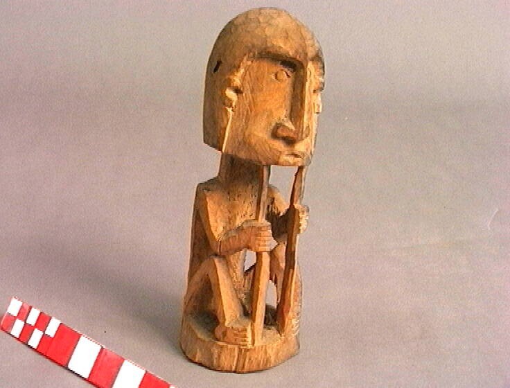 Voorouderbeeld van een zittende persoon met opgetrok...