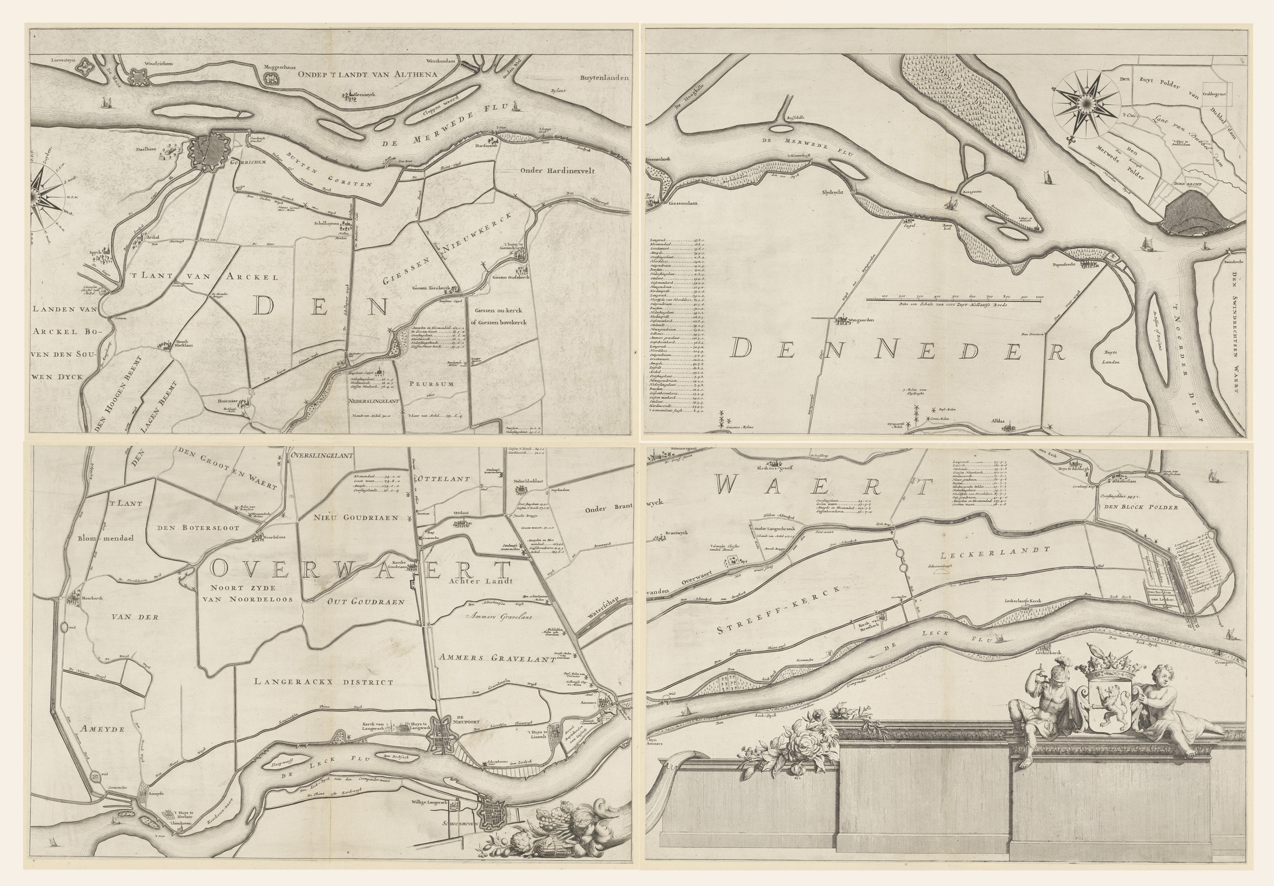 Kaart van de Overwaard, bestaande uit vier delen
