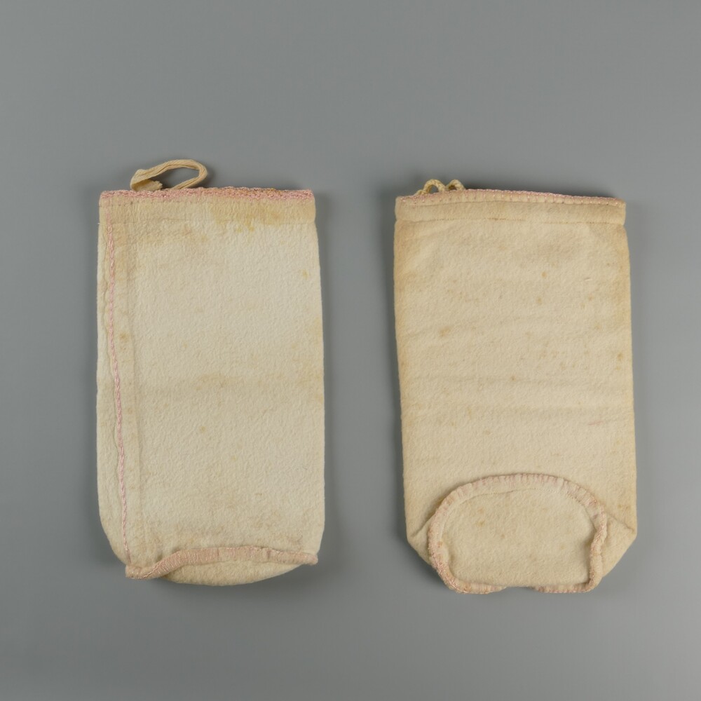 kruikenzak van wit katoenen flanel, 1e helft 20ste eeuw