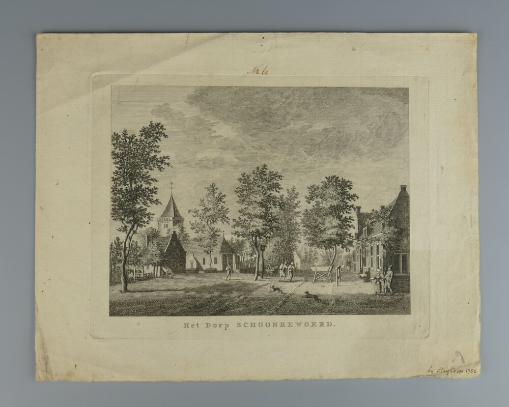 Gravure voorstellende Het dorp Schoonrewoerd, vervaa...