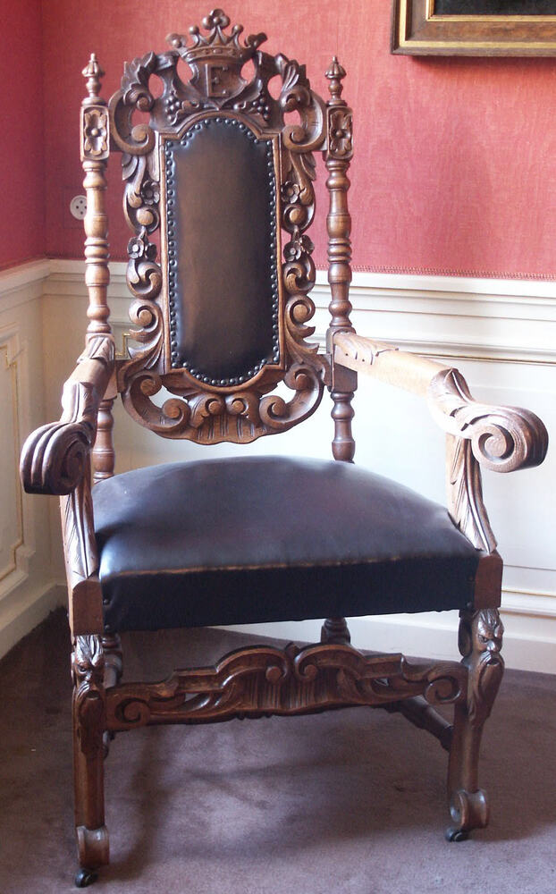 stoel van gedecoreerd eikenhout, afkomstig uit de pr...