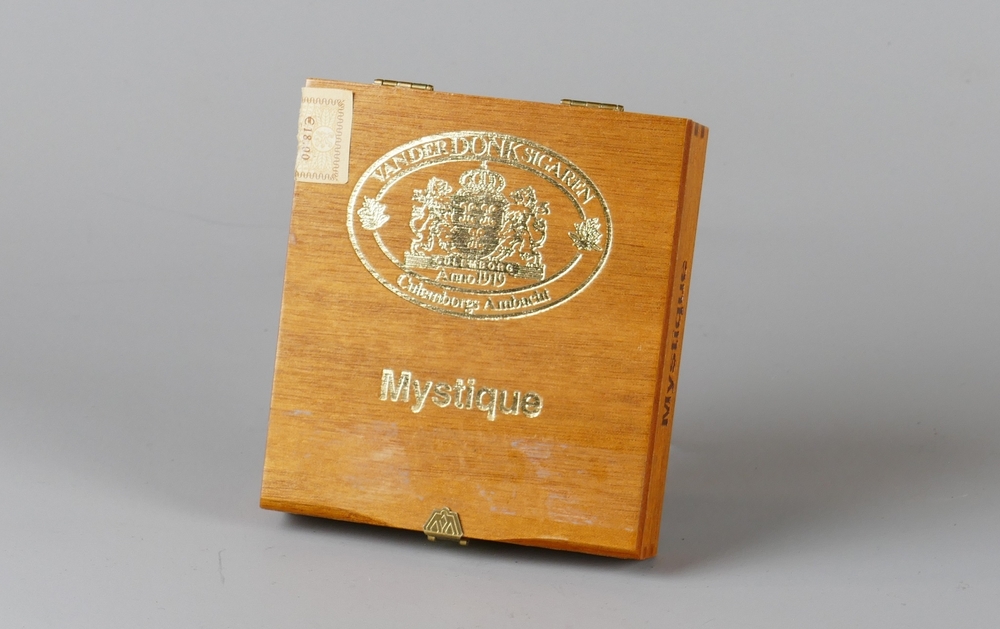 Sigarenkistje van hout met knipsluiting en opdruk, i...