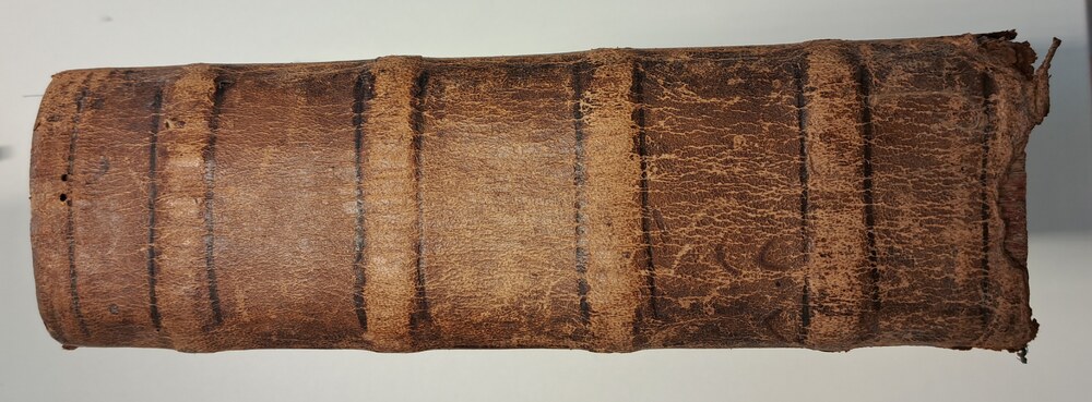 Boek van karton, leer en papier met titel 'Romanarum...
