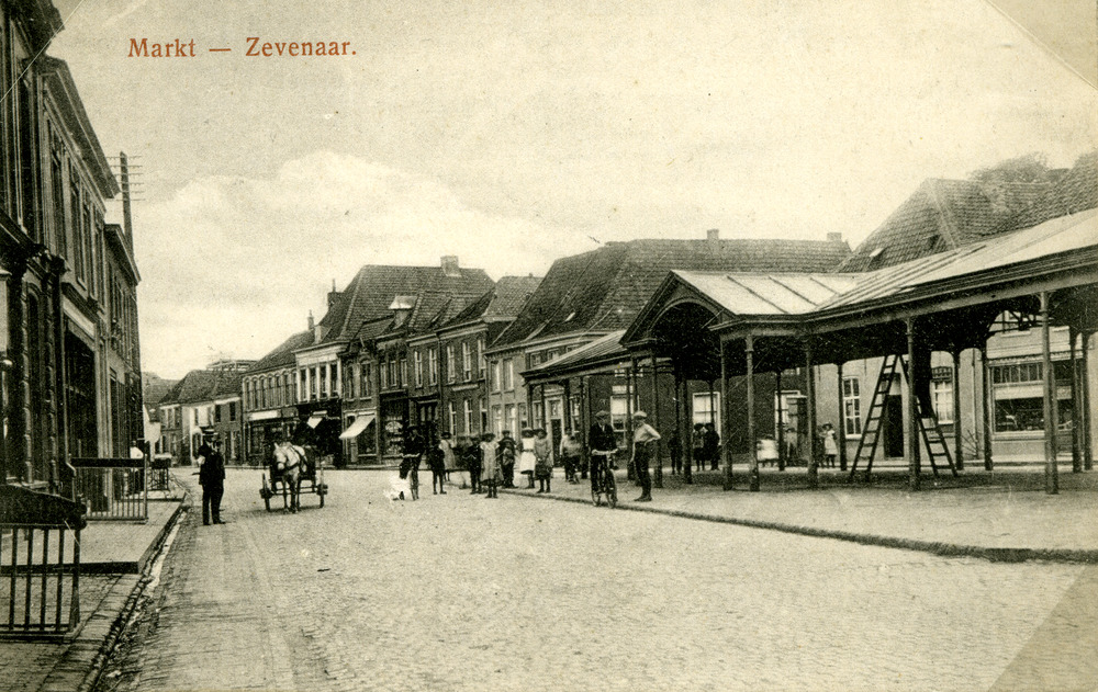 Ansichtkaart van de Markt te Zevenaar uitgave van B....