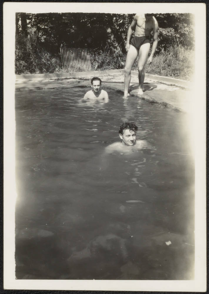 Drie soldaten in/bij een zwembad in de zomer van 194...