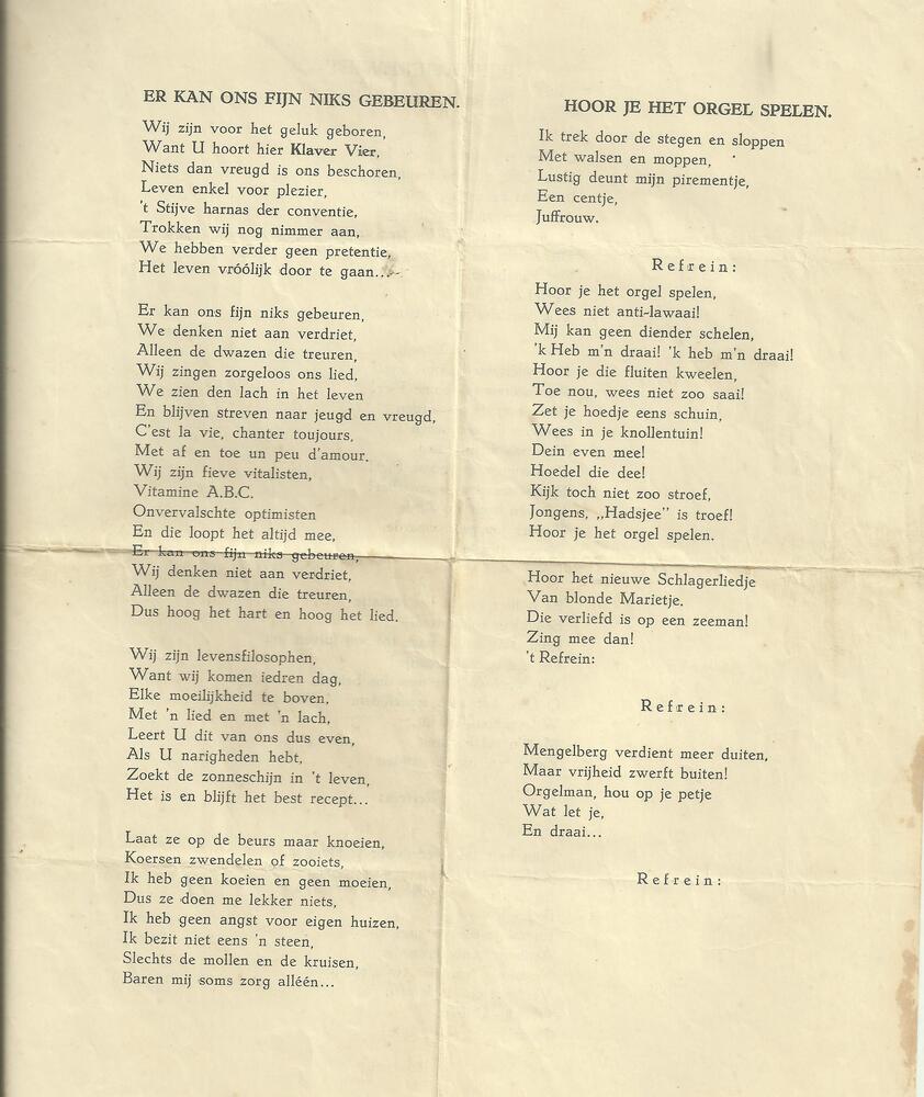 Programma en succesnummers uit de cabaret-revue "Bin...