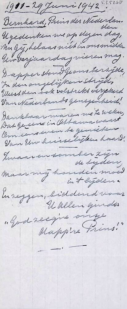 Vel met handgeschreven tekst: "1911 - 29 juni 1942 B...