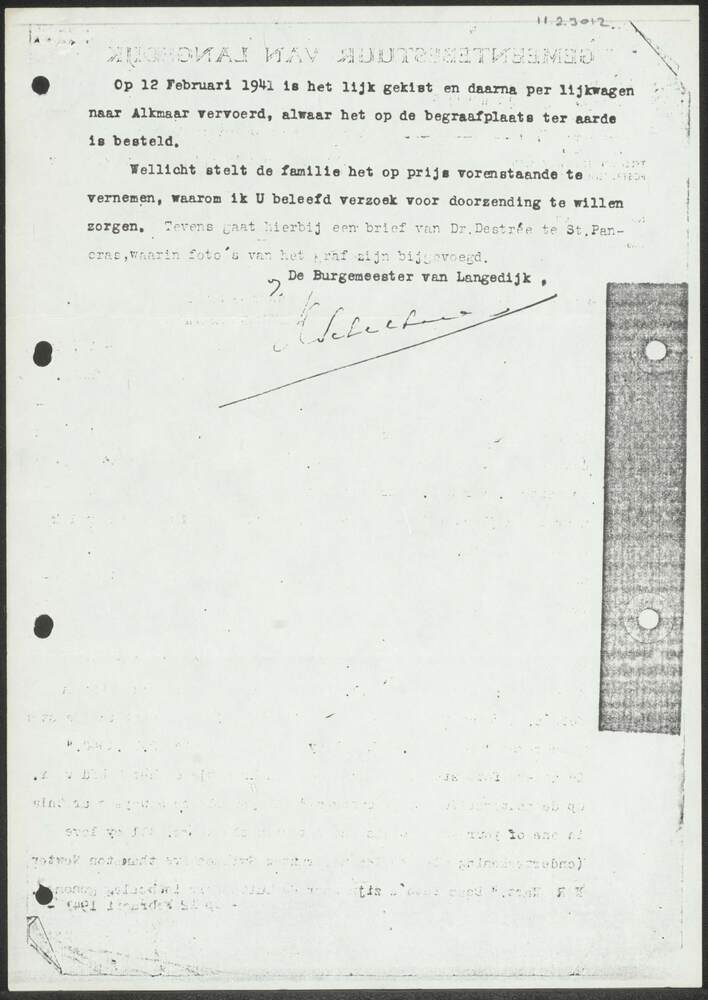 Brief van gemeentebestuur van Langedijk aan den Heer...