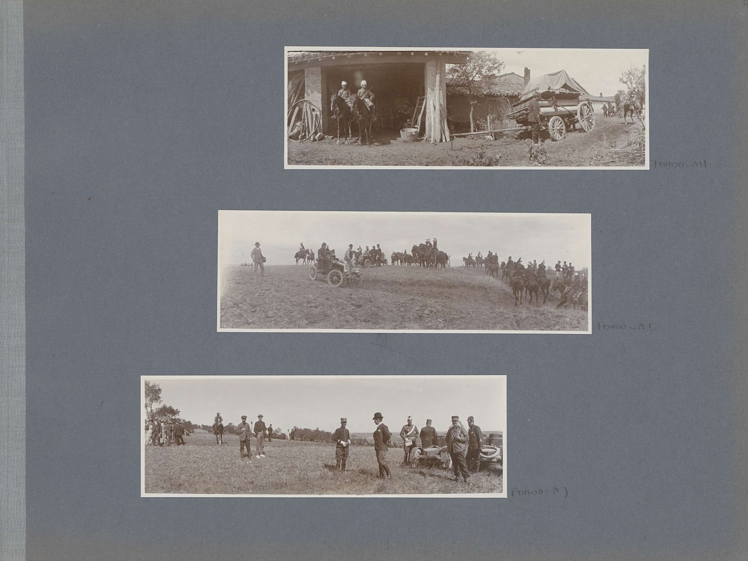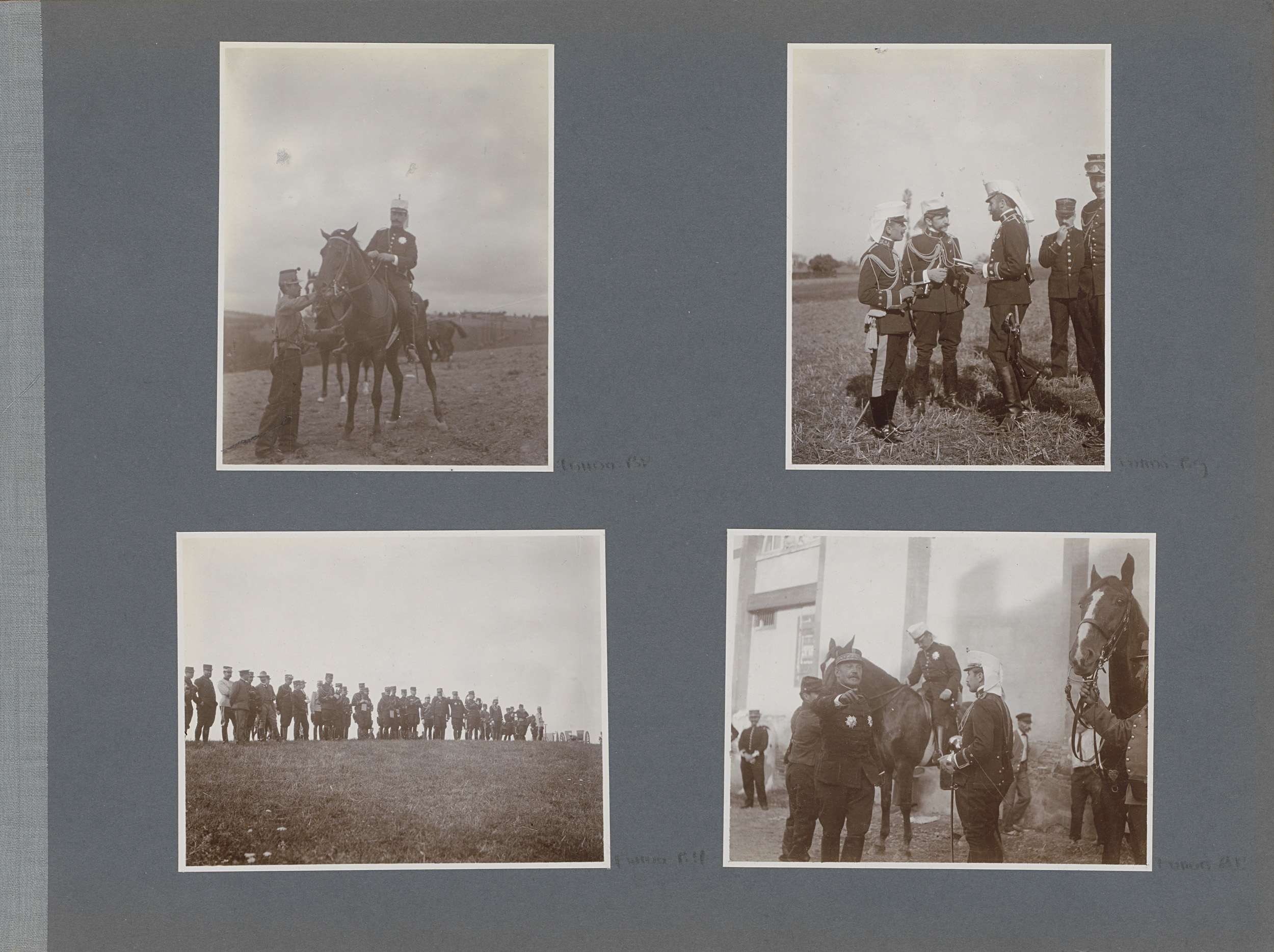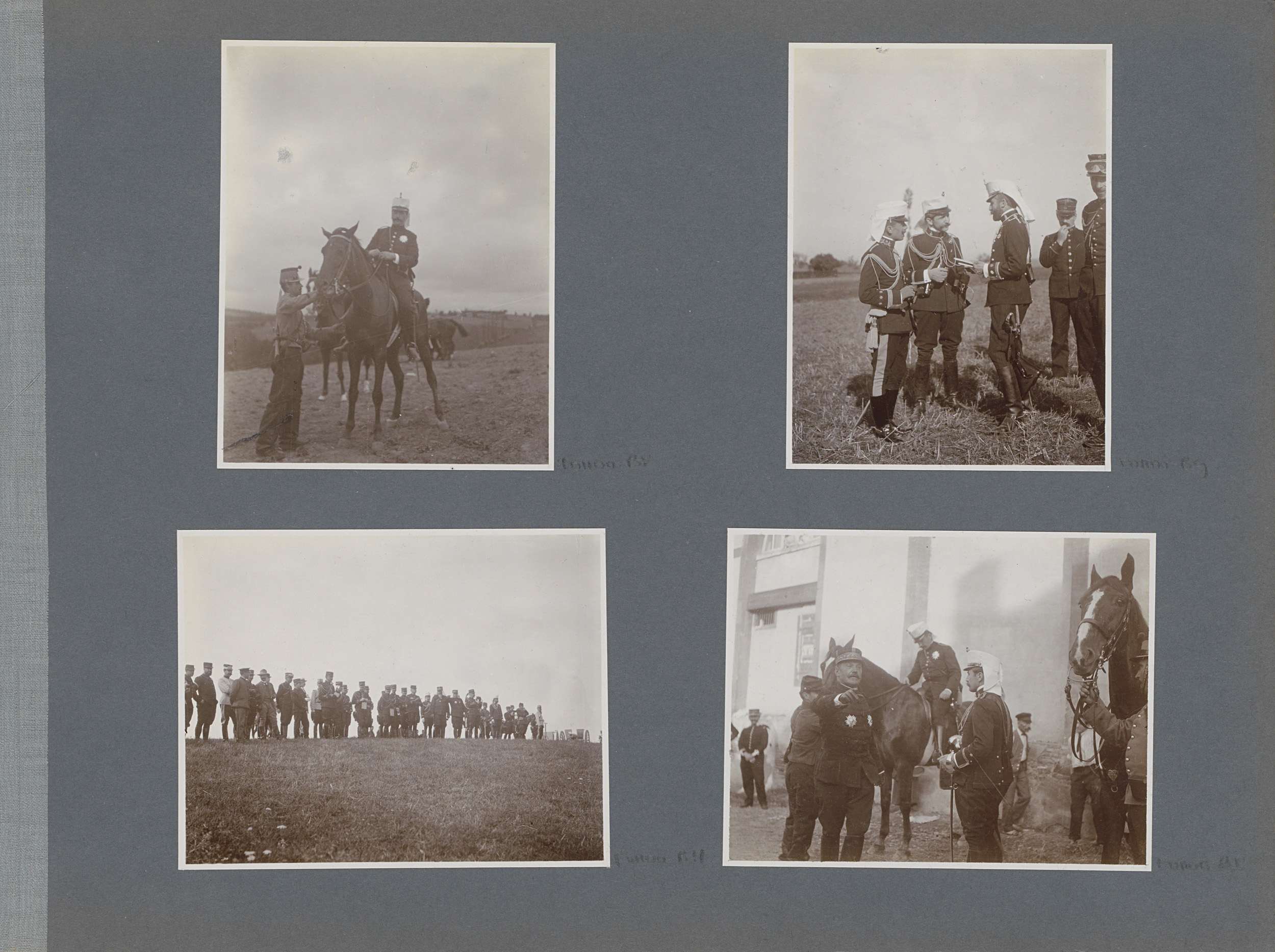 Militairen bij paarden in Frankrijk, één hoge milita...