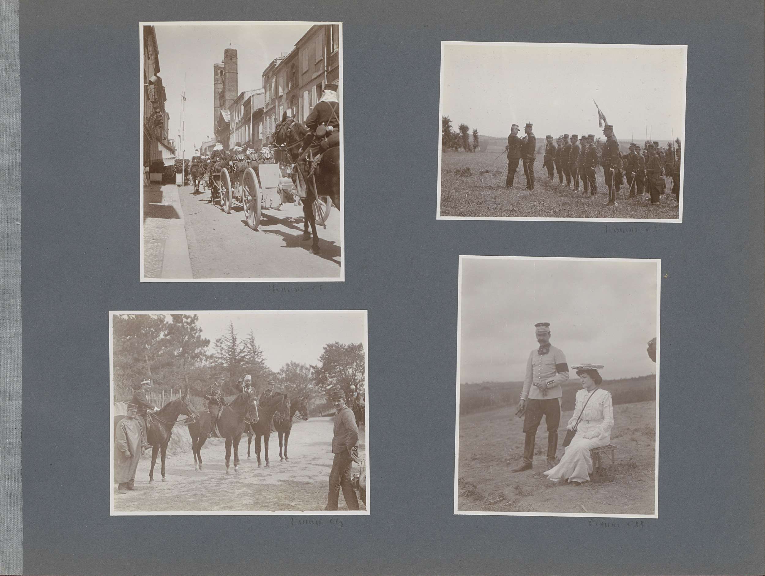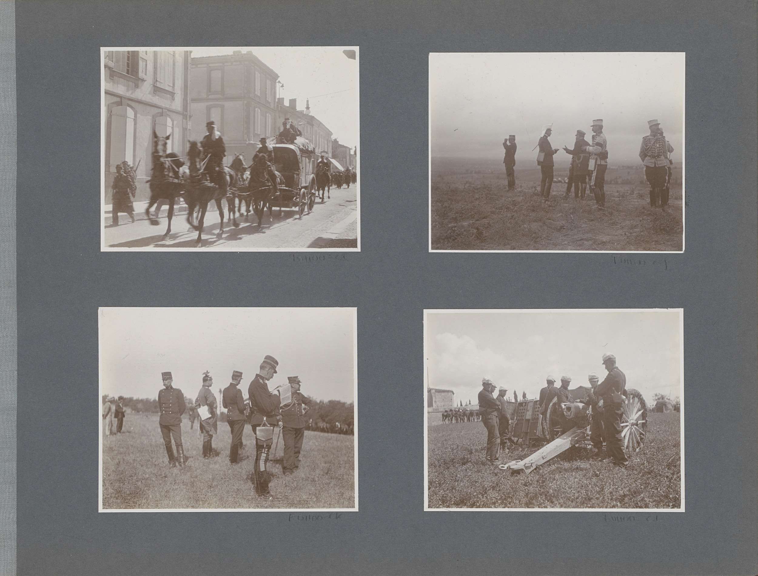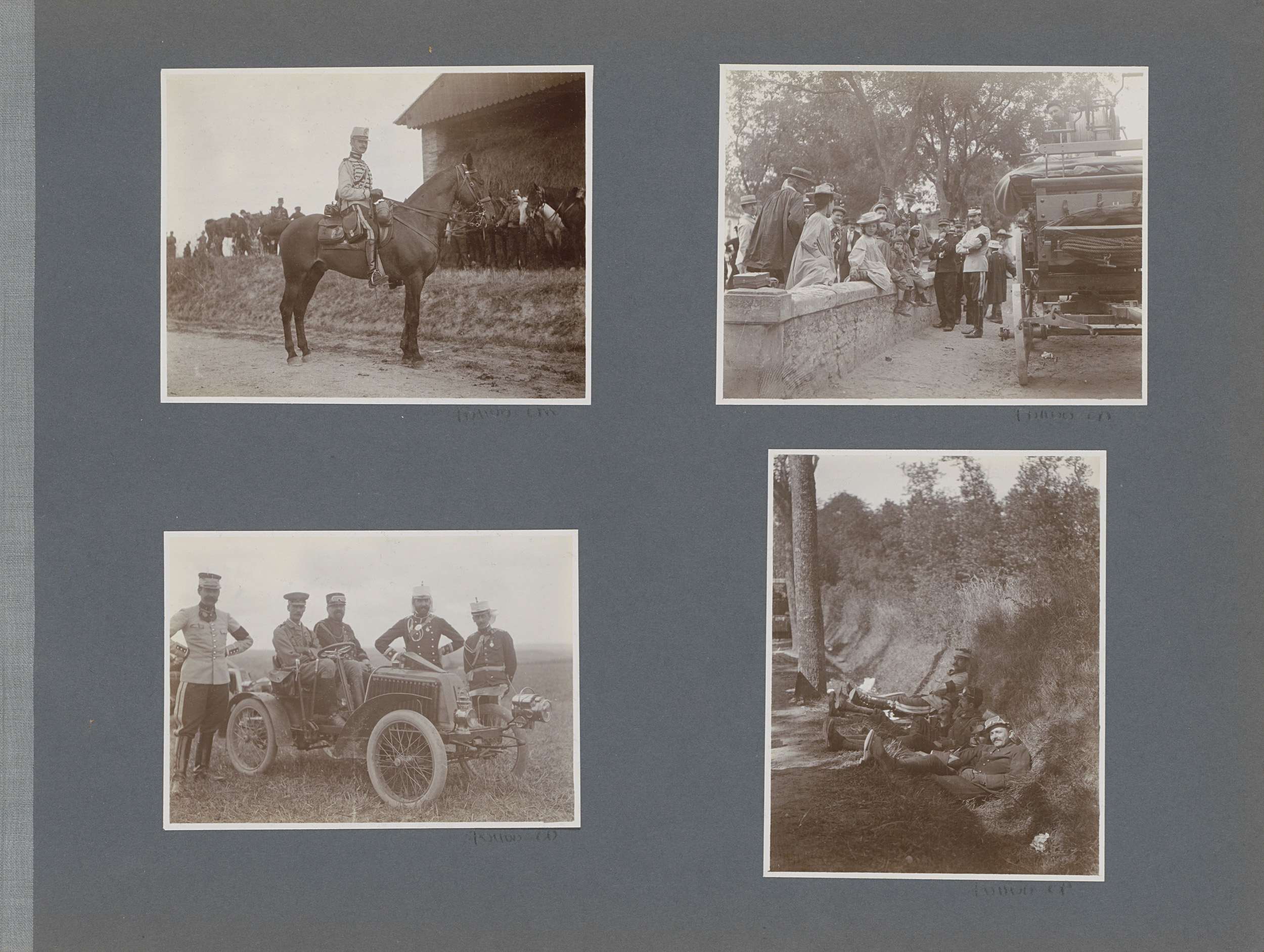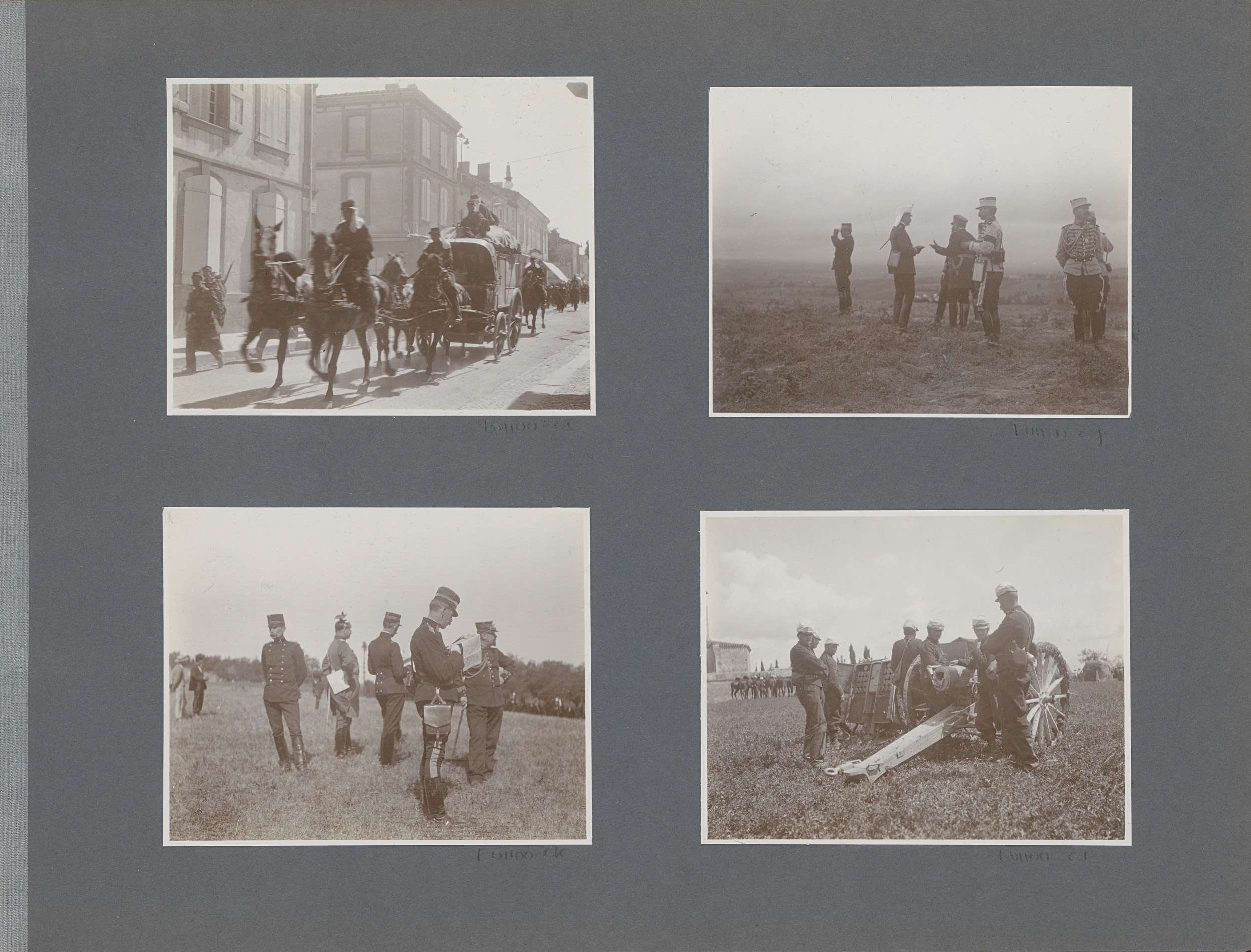 Militairen bij paarden in Frankrijk, één hoge milita...