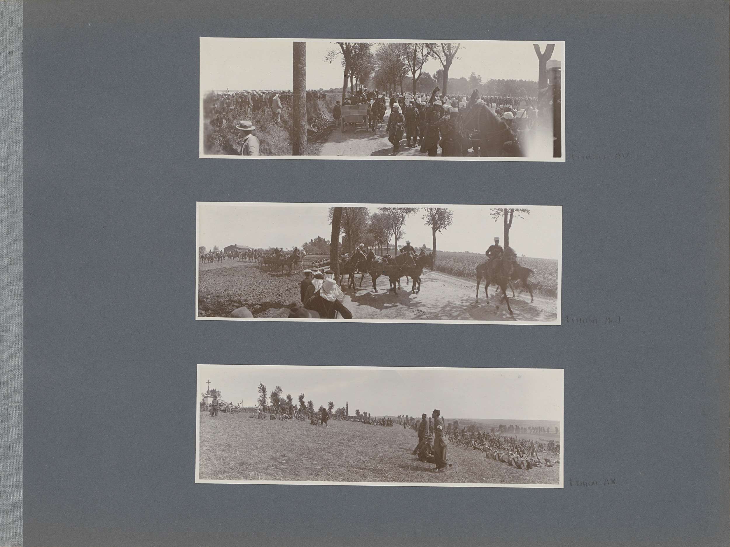 Rij militairen in een Frans veld
