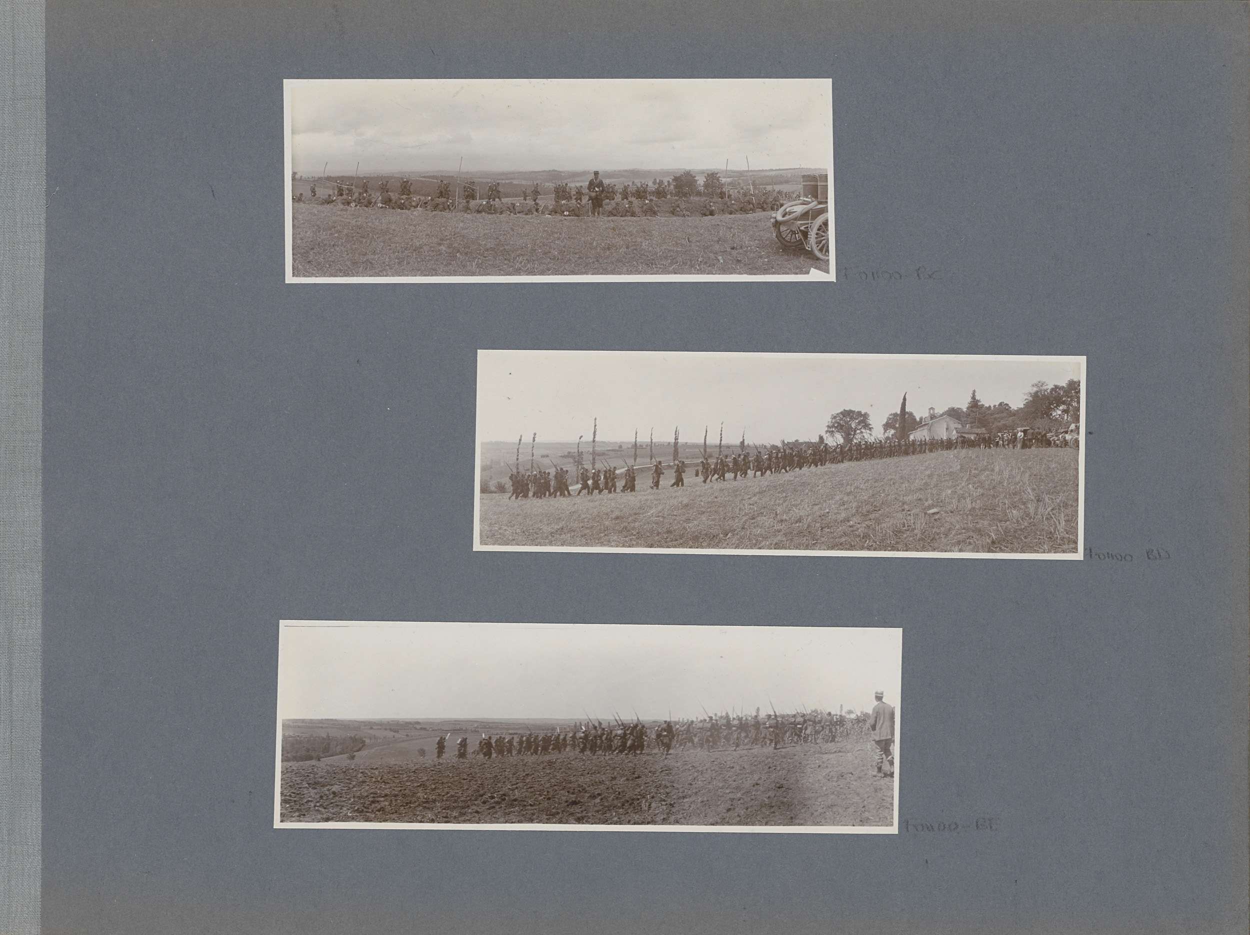 Marcherende militairen in een veld in Frankrijk
