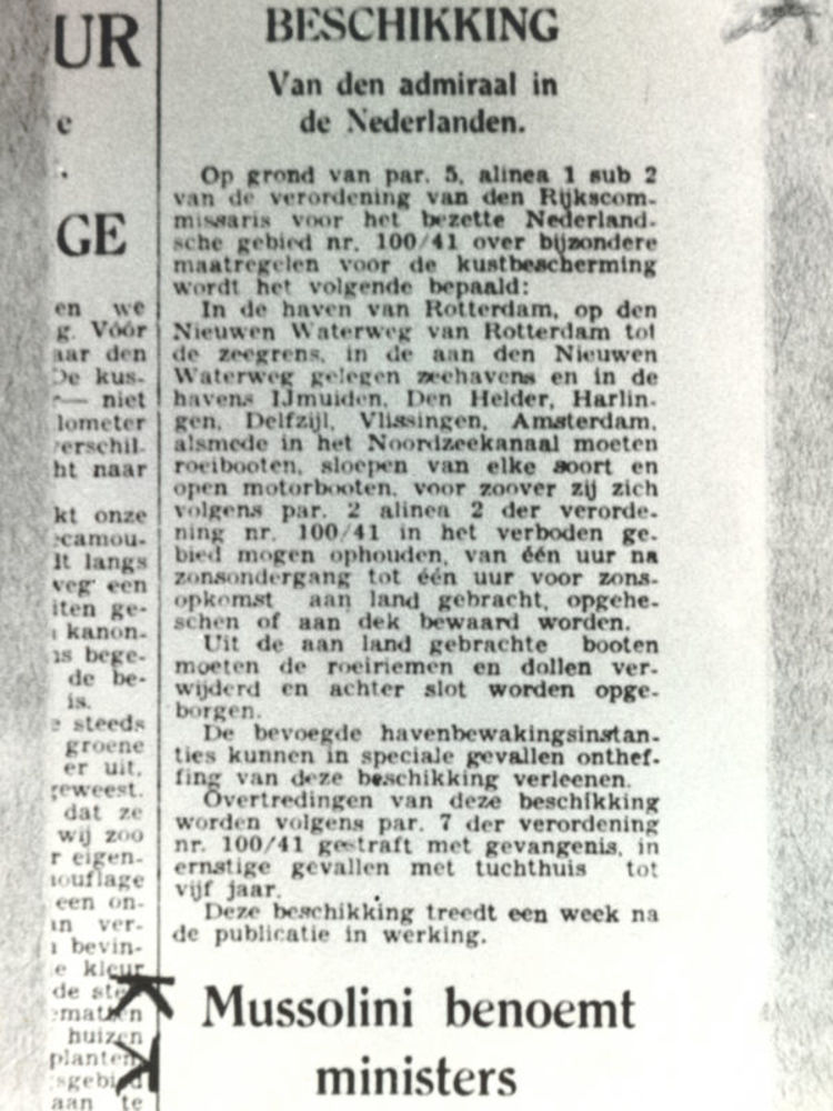 Krantenknipsel "Beschikking van den admiraal in de N...