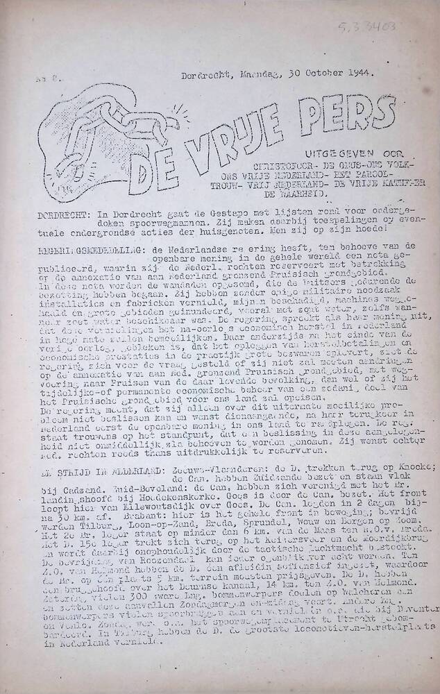 De Vrije Pers ( diverse uitgave ), No. 8, Dordrecht,...