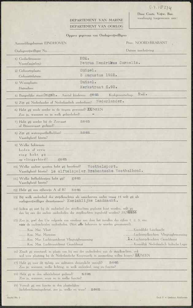 Aanmeldingsformulier oorlogsvrijwilliger Aanmeldings...