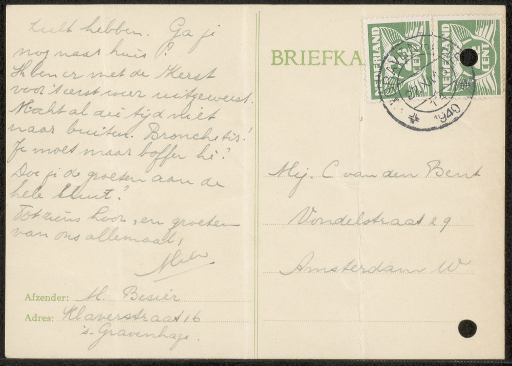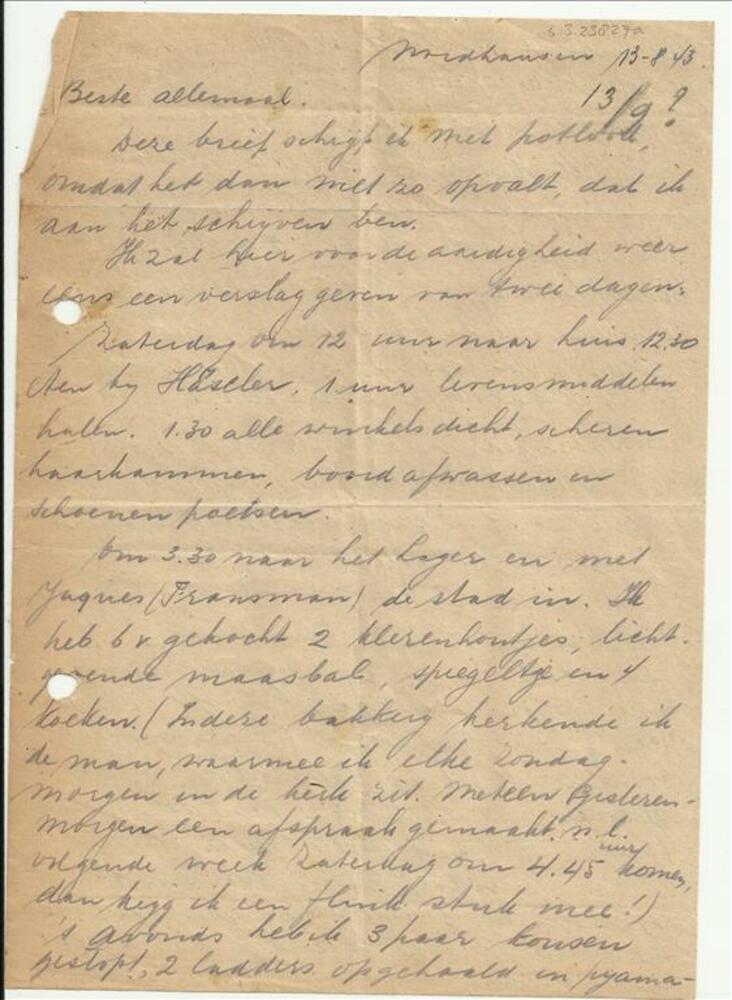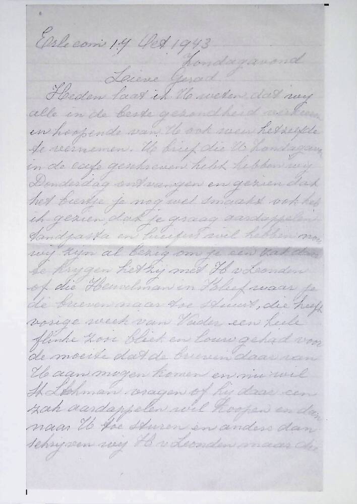 Brief in enveloppe. 17 oktober 1943. Aan den heer G....
