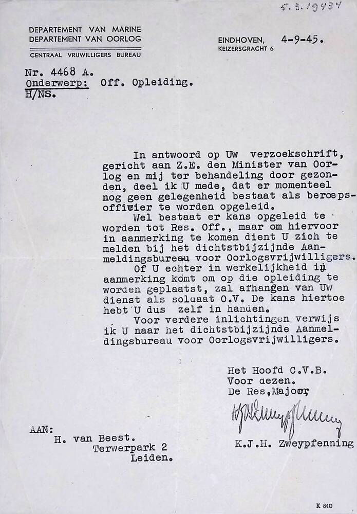 Antwoord op verzoekschrift, opleiding beroepsofficier