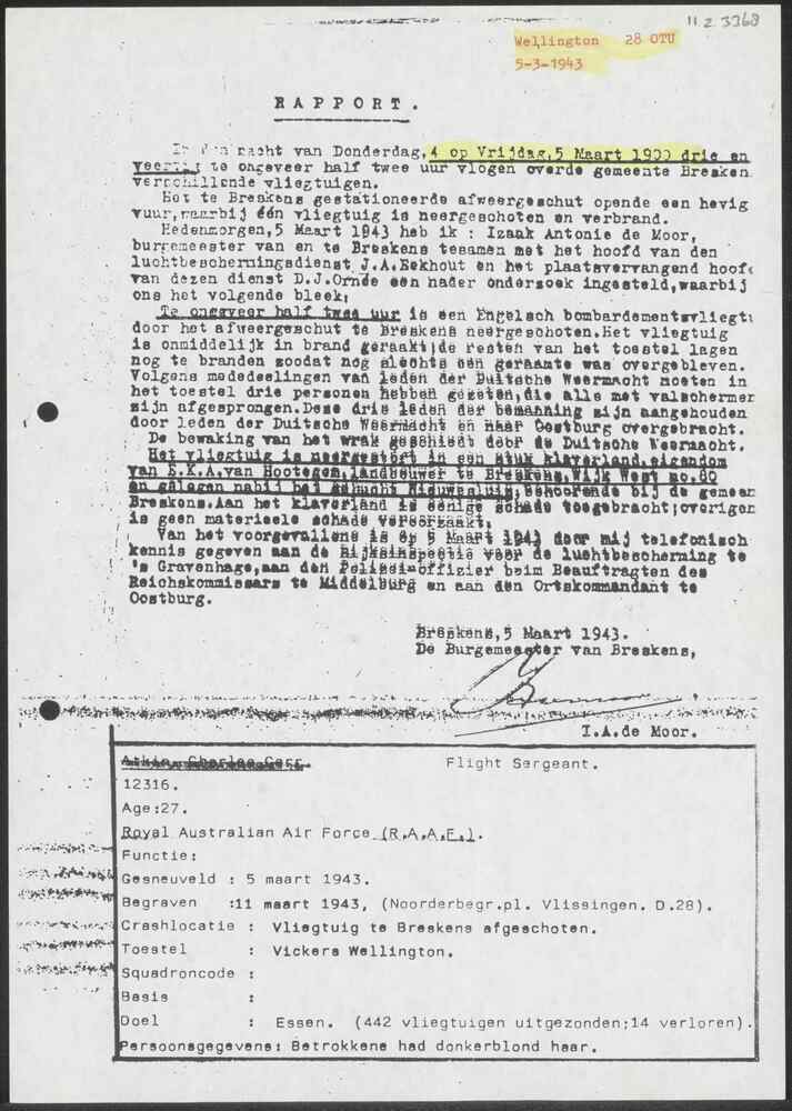 Rapport Burgemeester van Breskens 05 maart 1943.