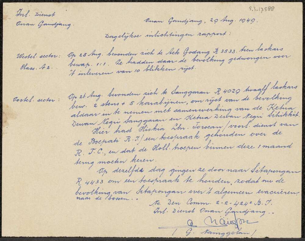 Handgeschreven dagelijks inlichtingenrapport van G. ...