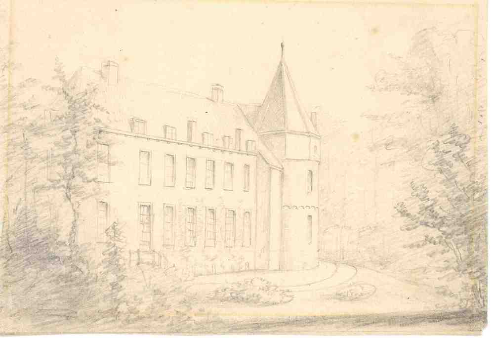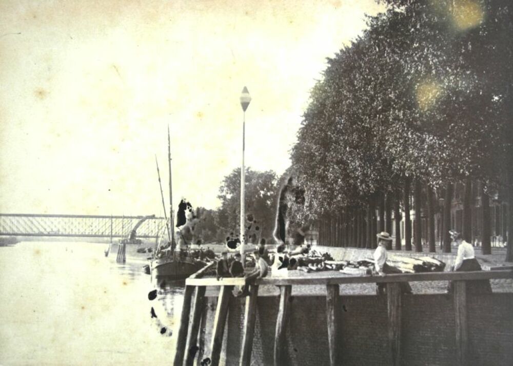 Foto, voorstellende de dijk met huize Landlust te Sc...