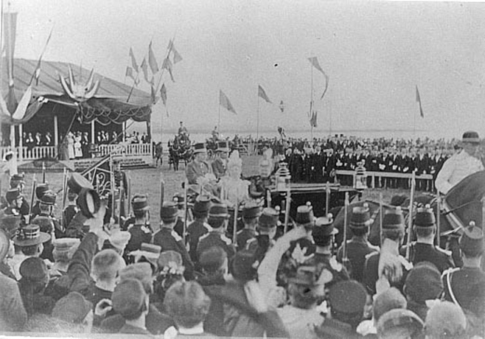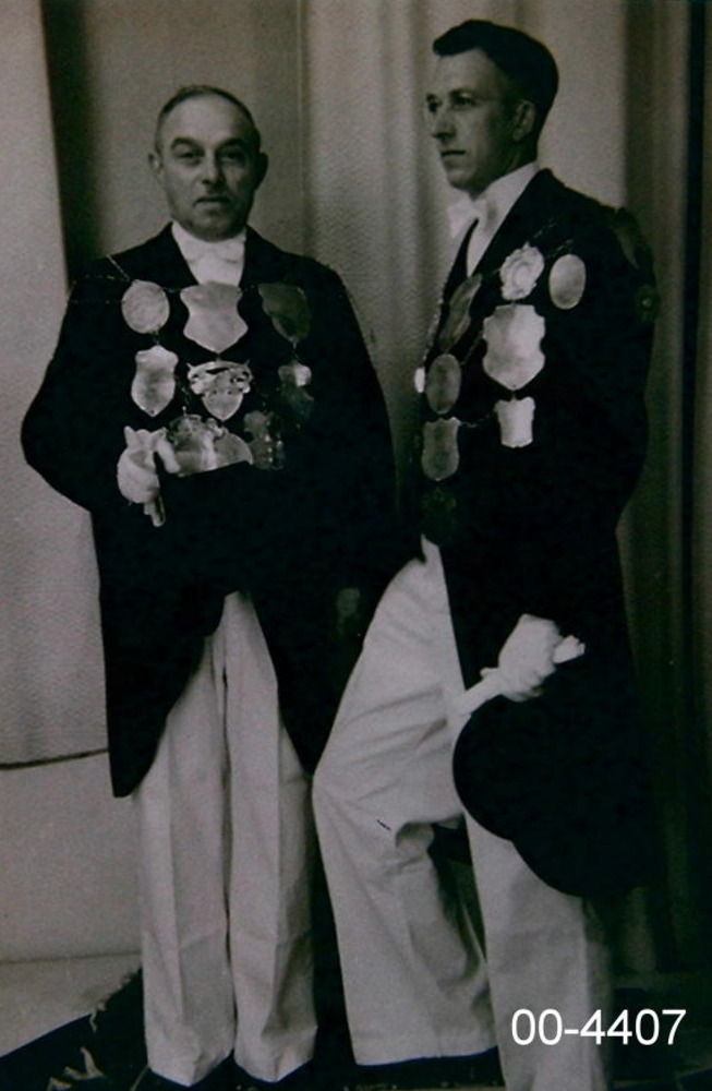 Zwart-wit foto van de Schutterij Eensgezindheid in A...