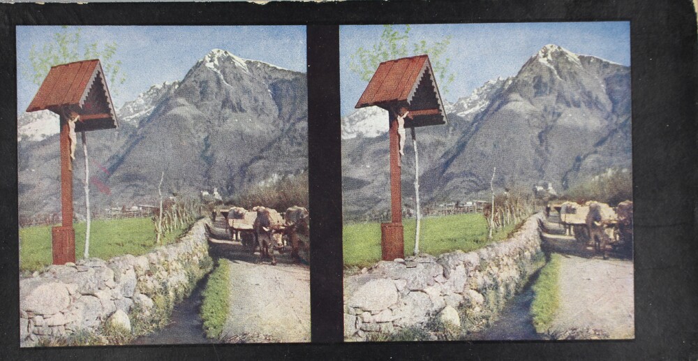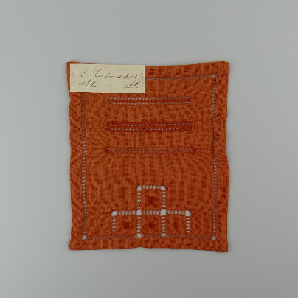 Mariavaandeltje met Maria in blauwdruk op witte stof...