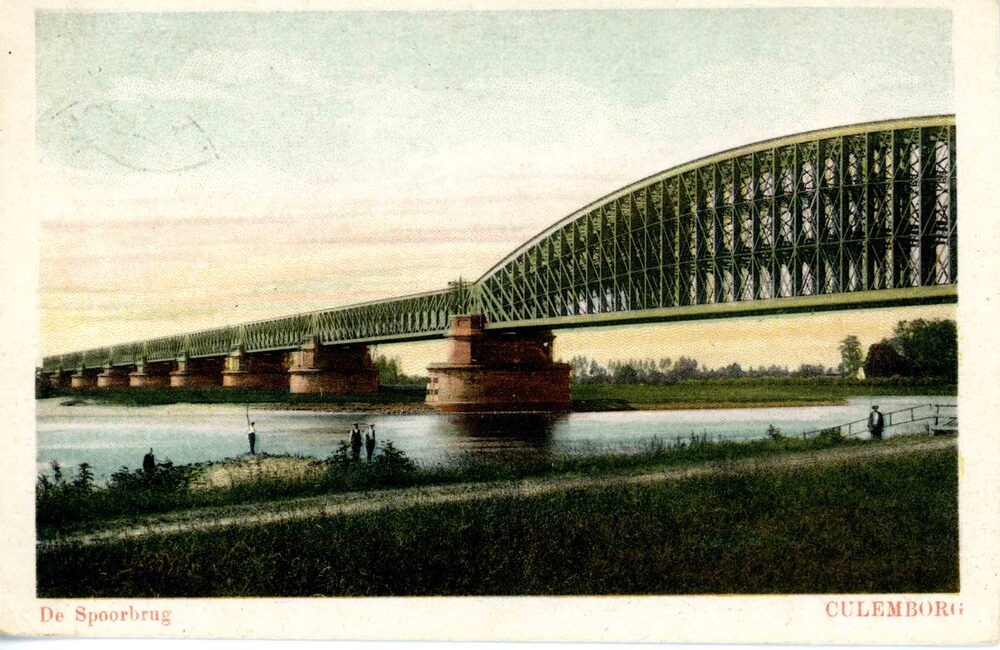 Ansichtkaart, voorstellende de spoorbrug te Culembor...
