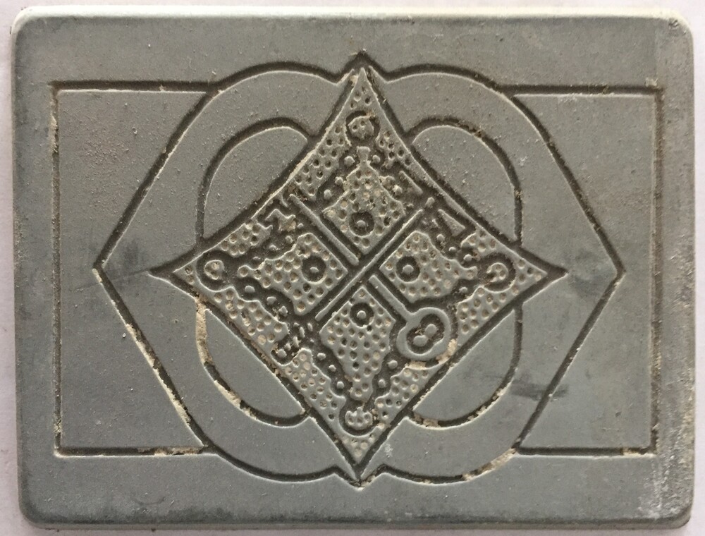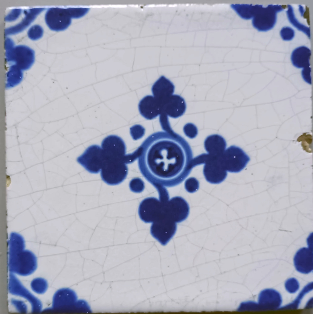 Tegel in tinglazuur, voorstellende ornament met flor...