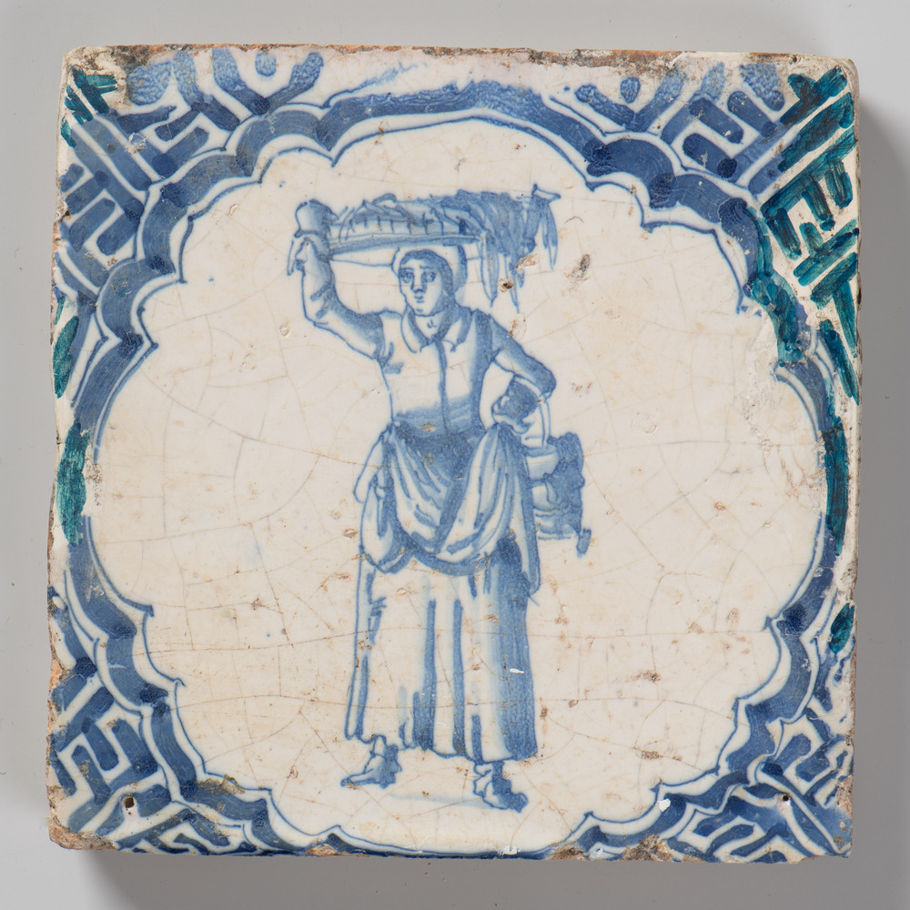 tegel van aardewerk met tinglazuur, voorstellende: h...