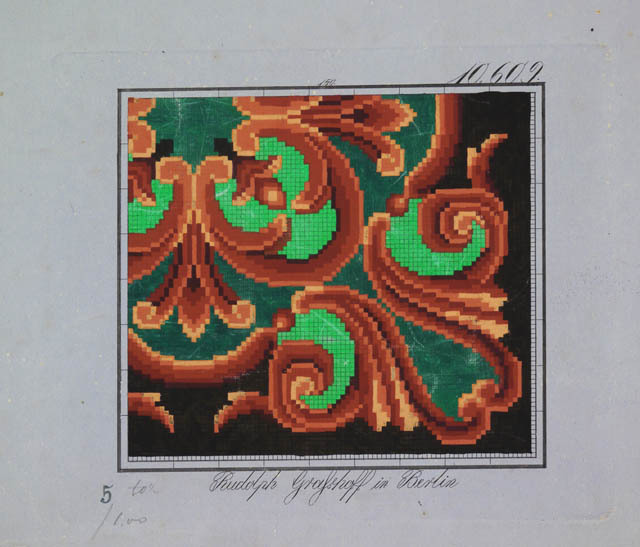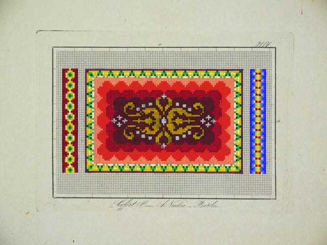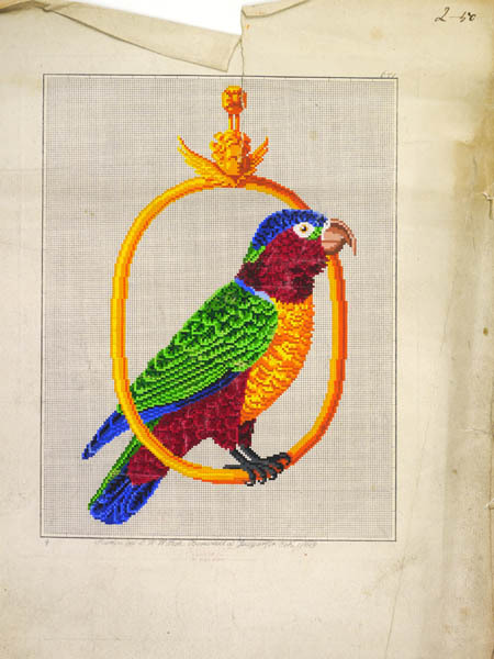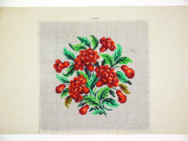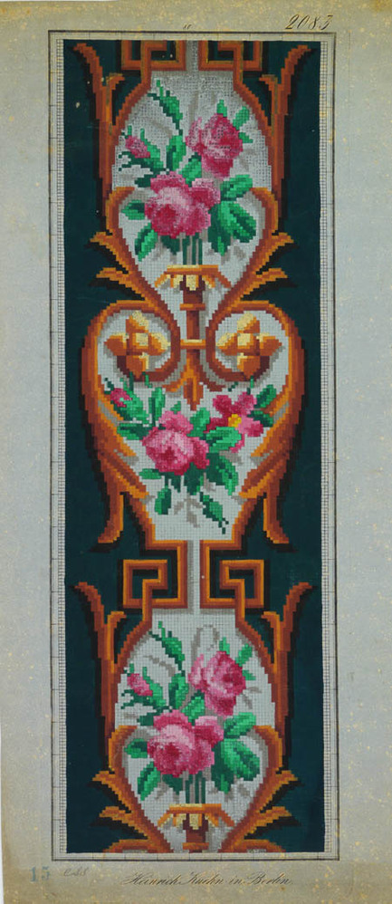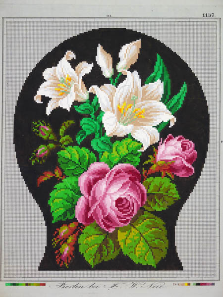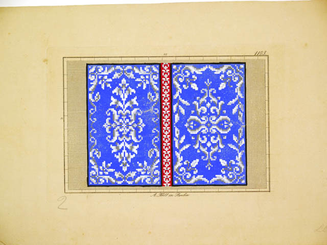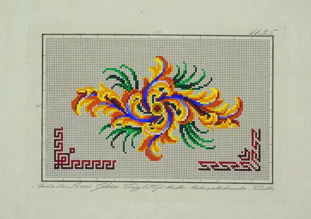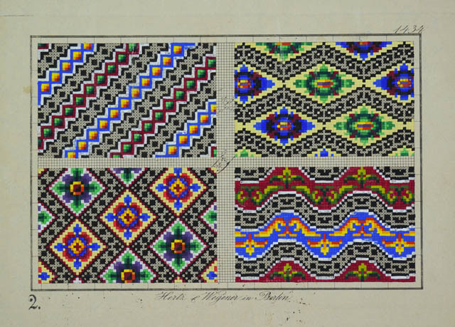 Borduurpatronen, met de hand ingekleurd met gouache....