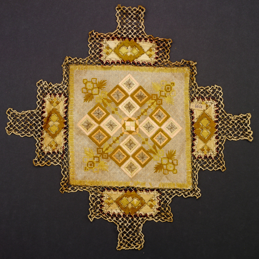 Kleedje met rechthoekige motieven in naaldkant en bo...