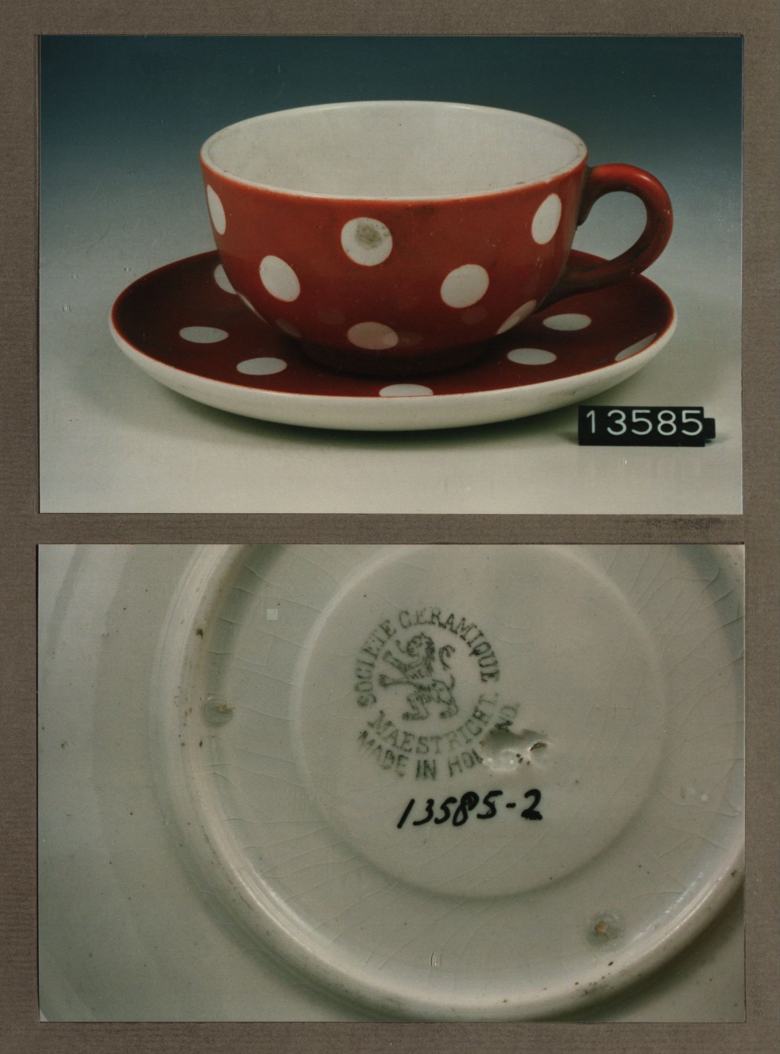 Kop en schotel, model Boule met decor Pastilles