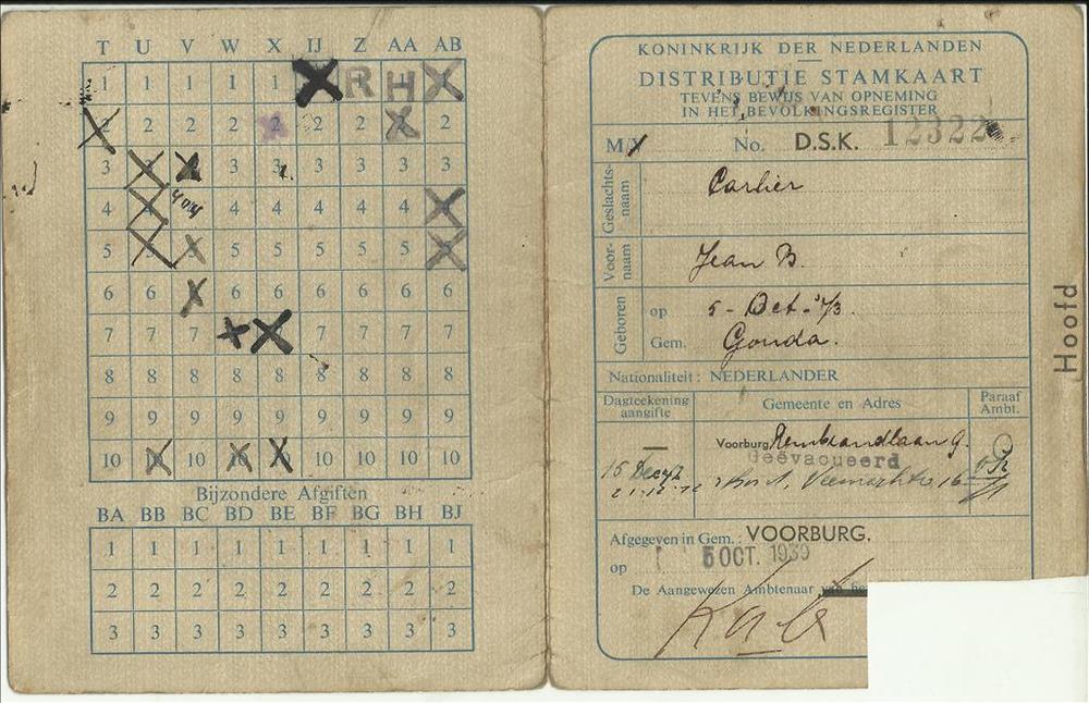 Distributiestamkaart op naam van Carlier Jean B