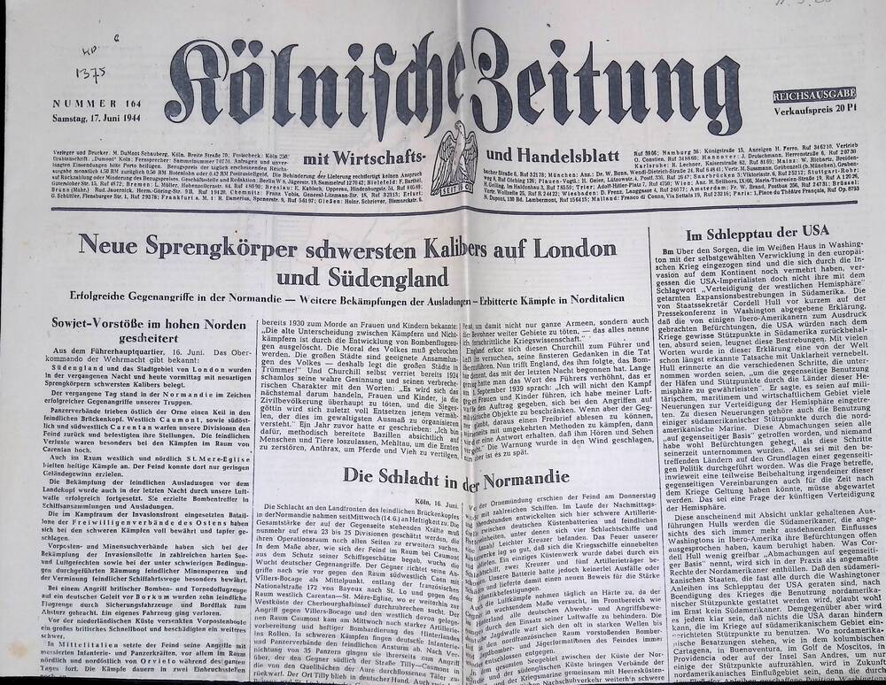 Kölnische Zeitung, 17 juni 1944