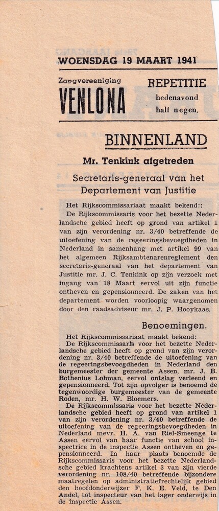 Krantenartikel 19 maart 1941