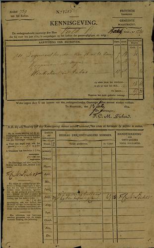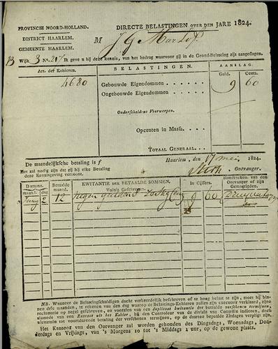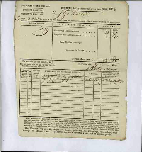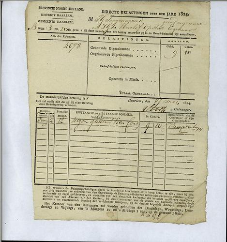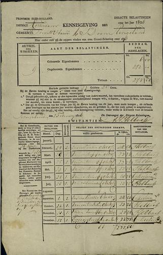 Aanslagbiljet, grondbelasting, 1824