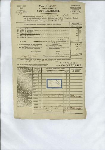 Aanslagbiljet, personele belasting, 1824