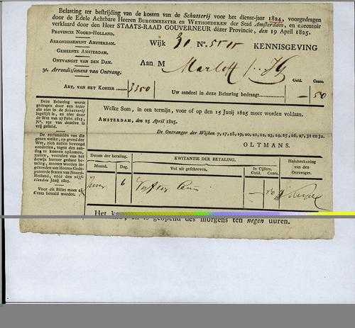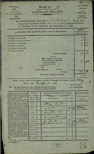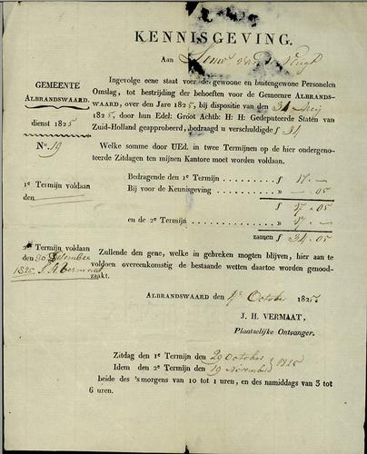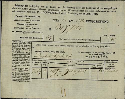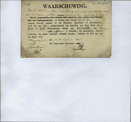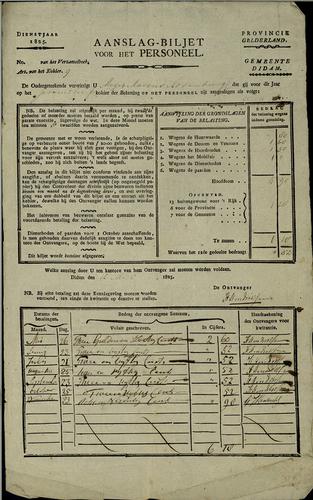 Aanslagbiljet, personele belasting, 1825